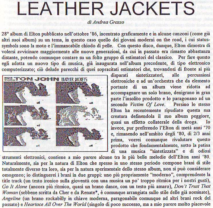 alla fine Leather Jackets non sarà figlio dell'Elton genio di